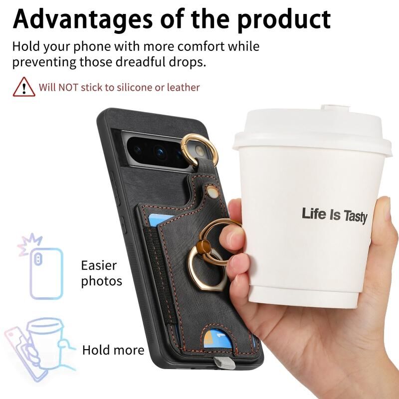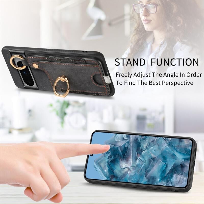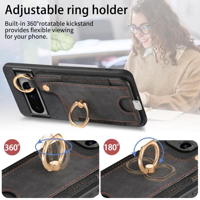 Για το Google Pixel 8 Pro Ρετρό δέρμα αίσθηση δαχτυλίδι κάρτα τσάντα υπόθεση τηλεφώνου με Hang Loop (Μαύρο)