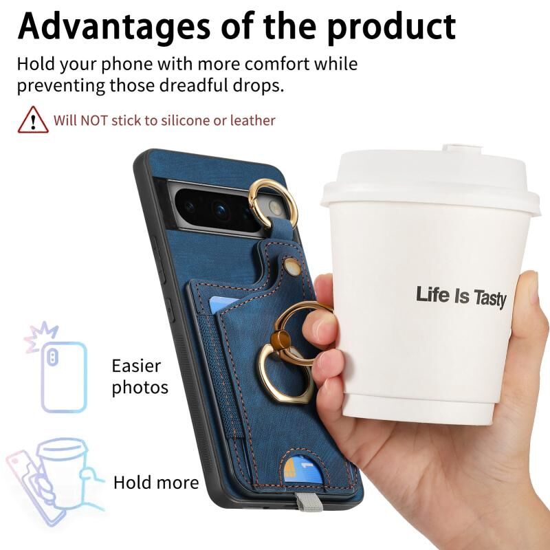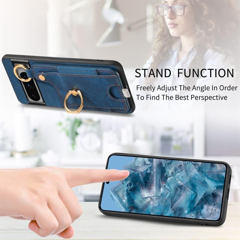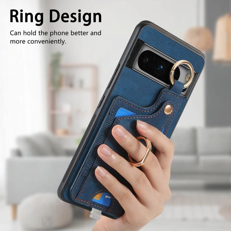 Για το Google Pixel 8 Pro Ρετρό δέρμα αίσθηση δαχτυλίδι τσάντα κάρτα υπόθεση τηλεφώνου με Hang Loop (μπλε)
