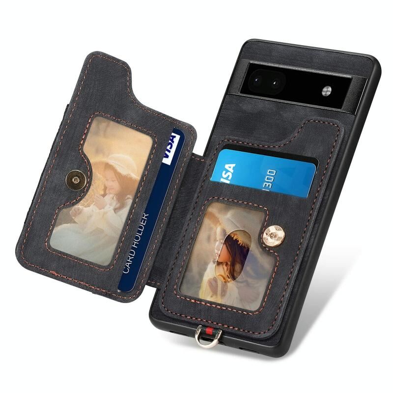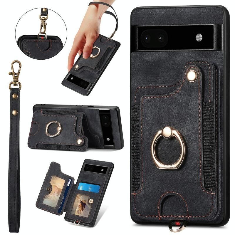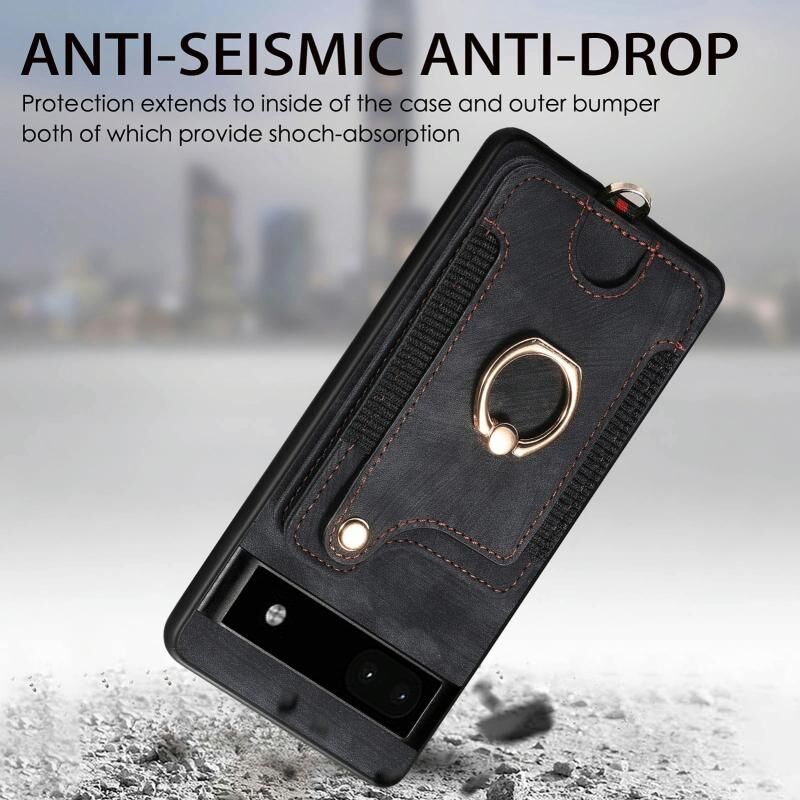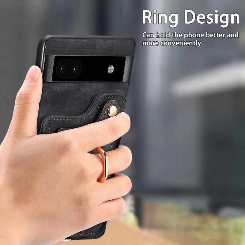 Για το Google Pixel 8 Pro Ρετρό δέρμα αίσθηση δαχτυλίδι πολυ-κάρτα RFID πορτοφόλι υπόθεση τηλεφώνου (Μαύρο)