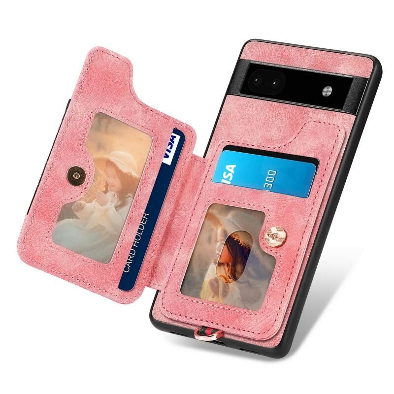 Για το Google Pixel 8 Pro Ρετρό δέρμα αίσθηση δαχτυλίδι πολυ-κάρτα RFID πορτοφόλι υπόθεση τηλεφώνου (ροζ)