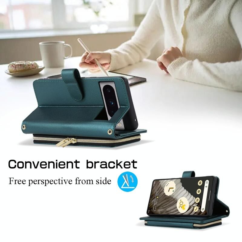 5. Λειτουργία πορτοφολιού πολλαπλών καρτών: Πολλαπλές υποδοχές καρτών και τσέπες πορτοφολιού με φερμουάρ, θήκες μετρητών μπορούν να αποθηκεύσουν τις πιστωτικές σας κάρτες και τα καθημερινά μικρά χαρτονομίσματα.