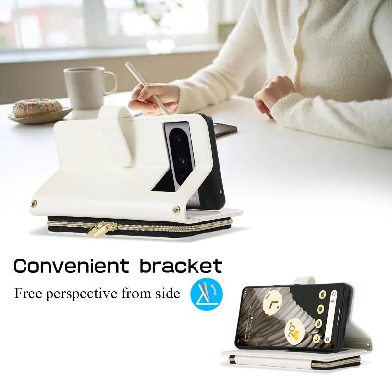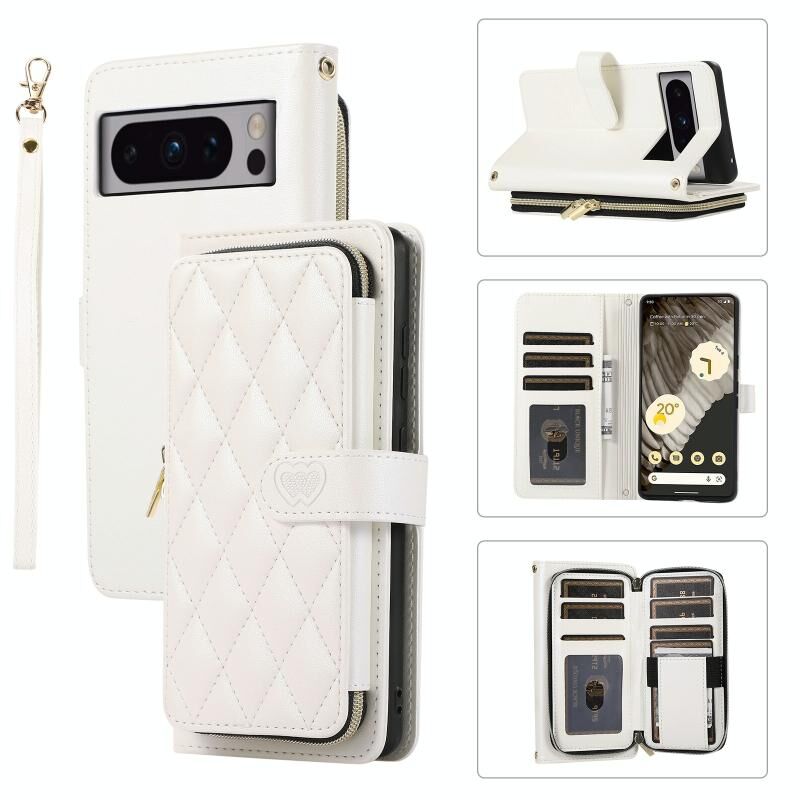 Για το Google Pixel 8 Pro Rhombic Πλήρης φερμουάρ πορτοφόλι δερμάτινη θήκη τηλεφώνου (λευκό)