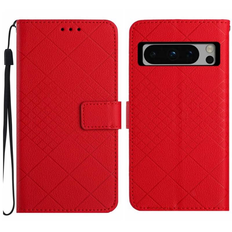 Για το Google Pixel 8 Pro Rhombic Grid Texture Δερμάτινη θήκη τηλεφώνου (κόκκινο)