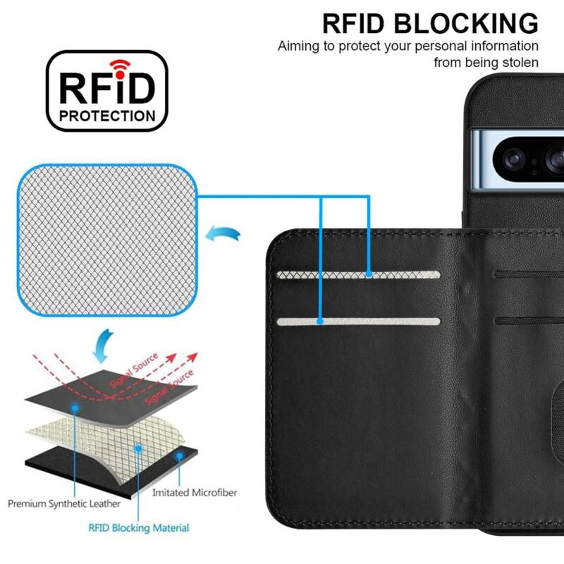 Για το Google Pixel 8 Pro Rhombic Texture Card Bag RFID θήκη τηλεφώνου με μακρύ κορδόνι (Μαύρο)