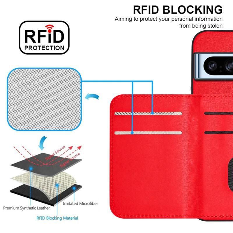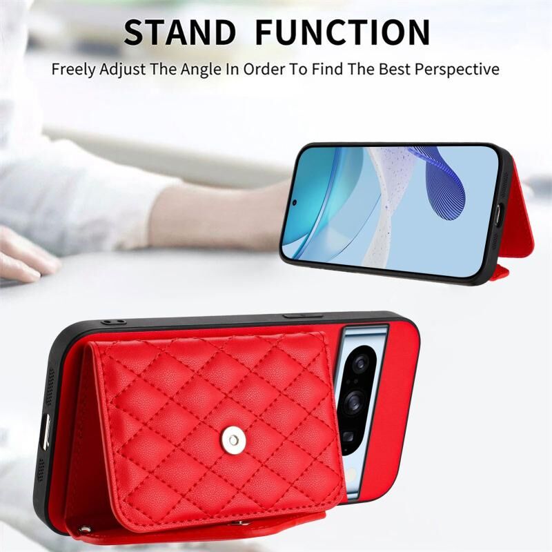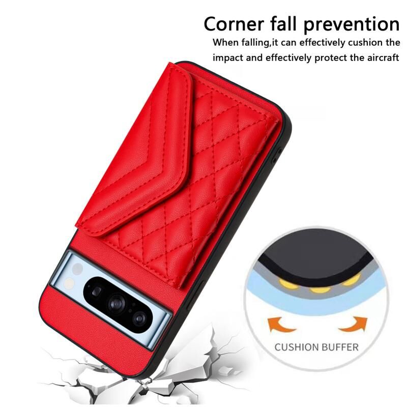 Για το Google Pixel 8 Pro Rhombic Texture Card Bag RFID υπόθεση τηλεφώνου με μακρύ κορδόνι (κόκκινο)