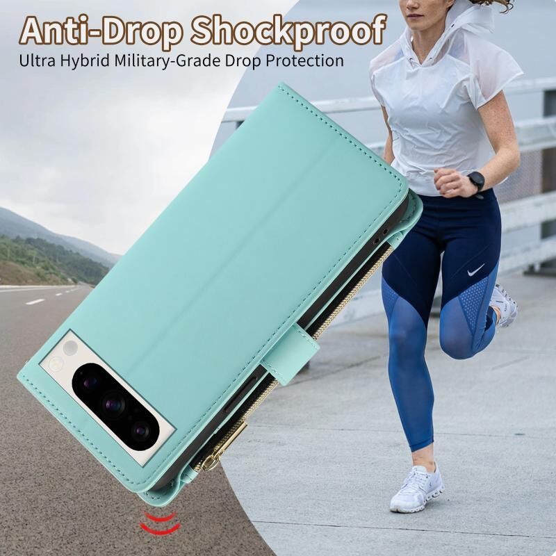 Για το Google Pixel 8 Pro Ρομβοειδές φερμουάρ πορτοφόλι δερμάτινη θήκη τηλεφώνου (κυανό)