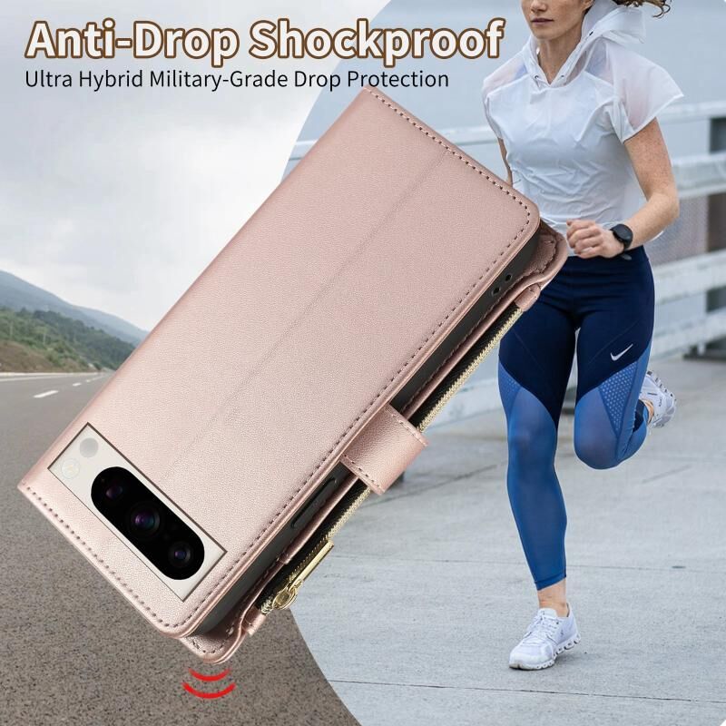 Για το Google Pixel 8 Pro Ρομβοειδές φερμουάρ πορτοφόλι δερμάτινη θήκη τηλεφώνου (ροζ χρυσό)