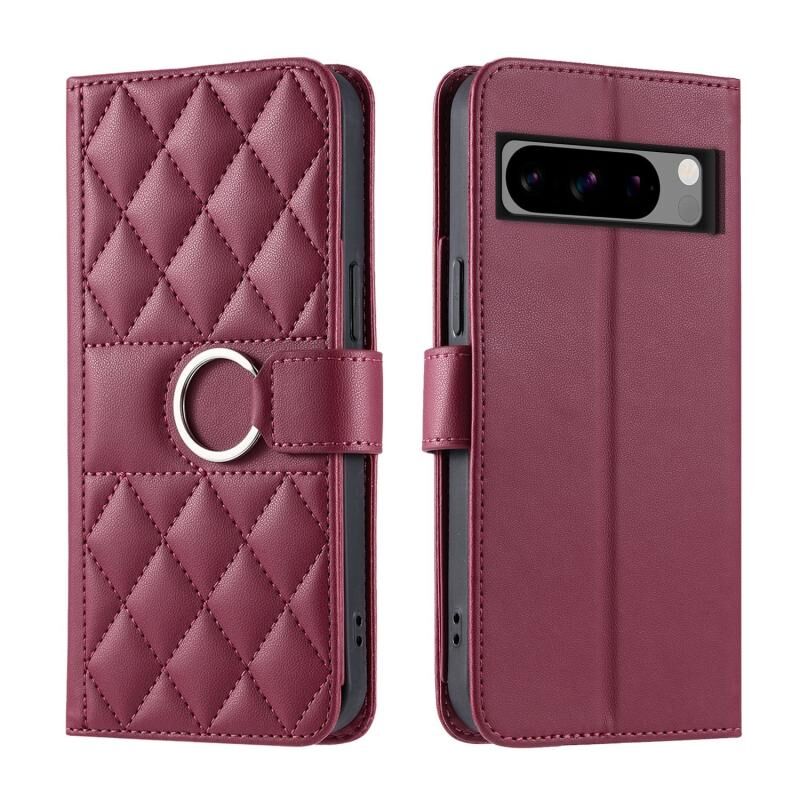 For Google Pixel 8 Pro Ring Buckle Rhombic Leather Phone Case(Red)
