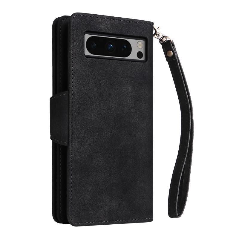 For Google Pixel 8 Pro Rivet Buckle 9 Cards Three Fold Leather Phone Case(Black)