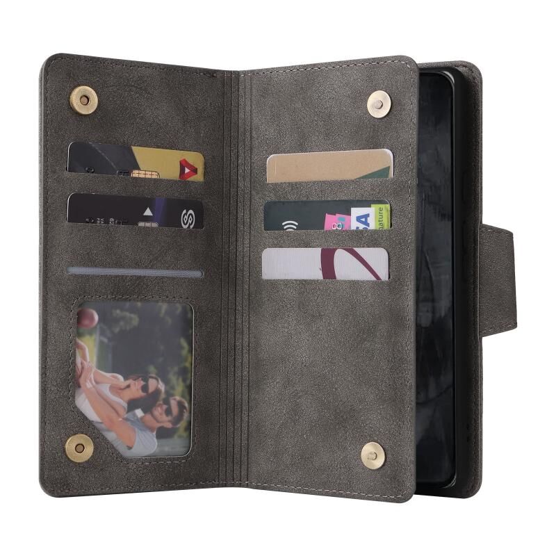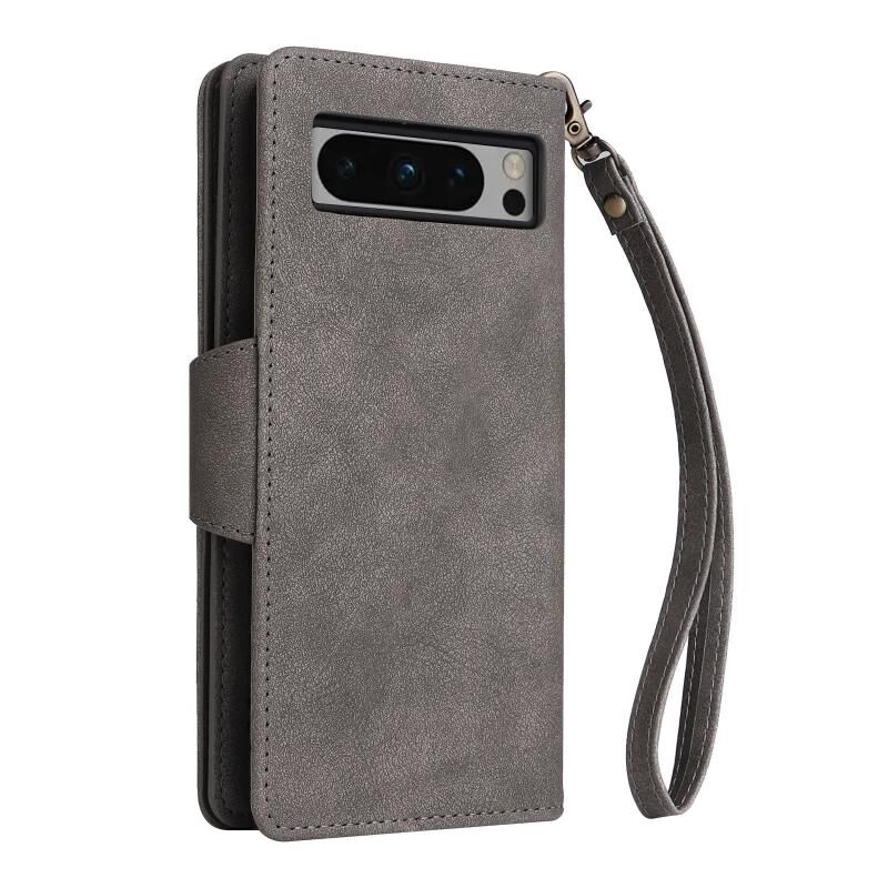 For Google Pixel 8 Pro Rivet Buckle 9 Cards Three Fold Leather Phone Case(Grey)