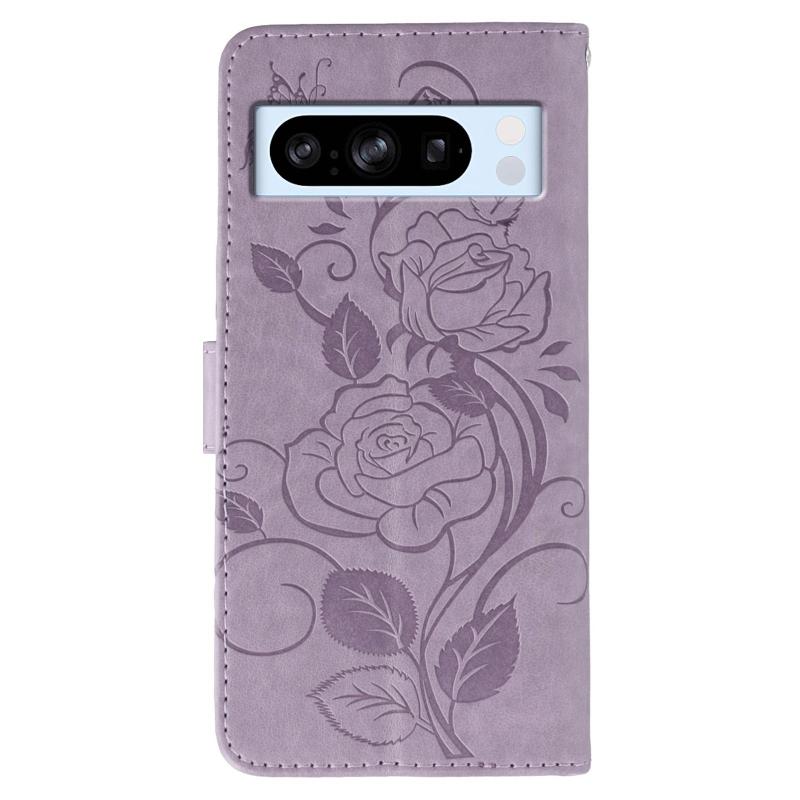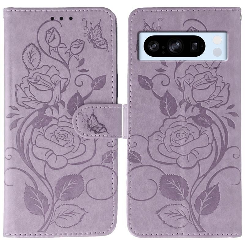 For Google Pixel 8 Pro Rose Butterfly Embossed Leather Phone Case(Purple)