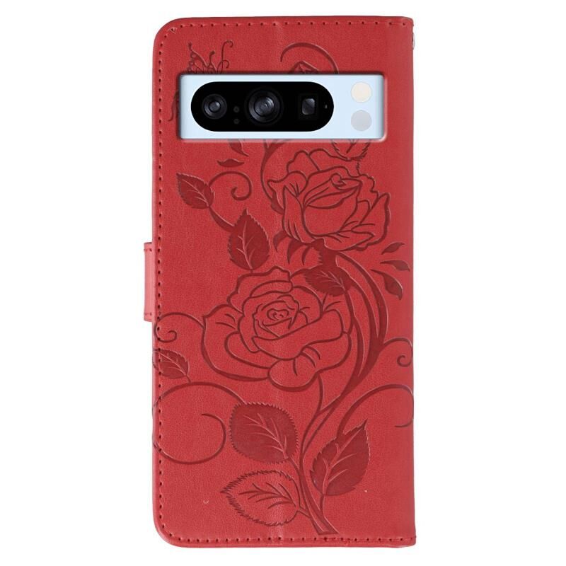 For Google Pixel 8 Pro Rose Butterfly Embossed Leather Phone Case(Red)
