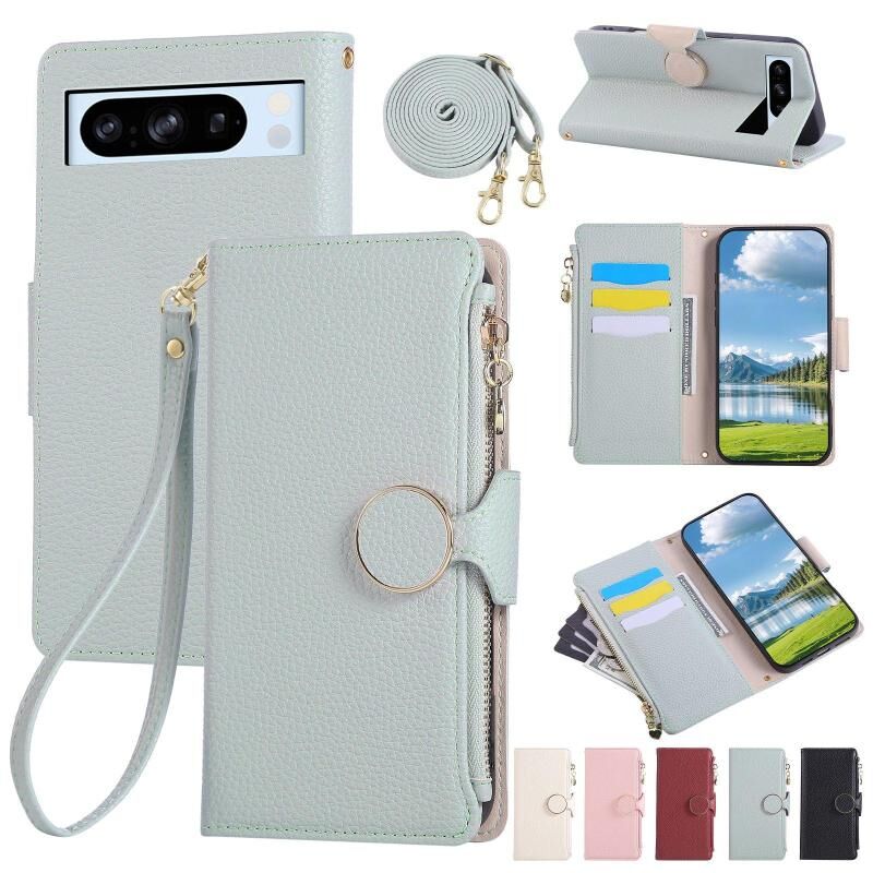 For Google Pixel 8 Pro Round Buckle Zipper Wallet Leather Phone Case with Crossbody Strap(Sky Blue)