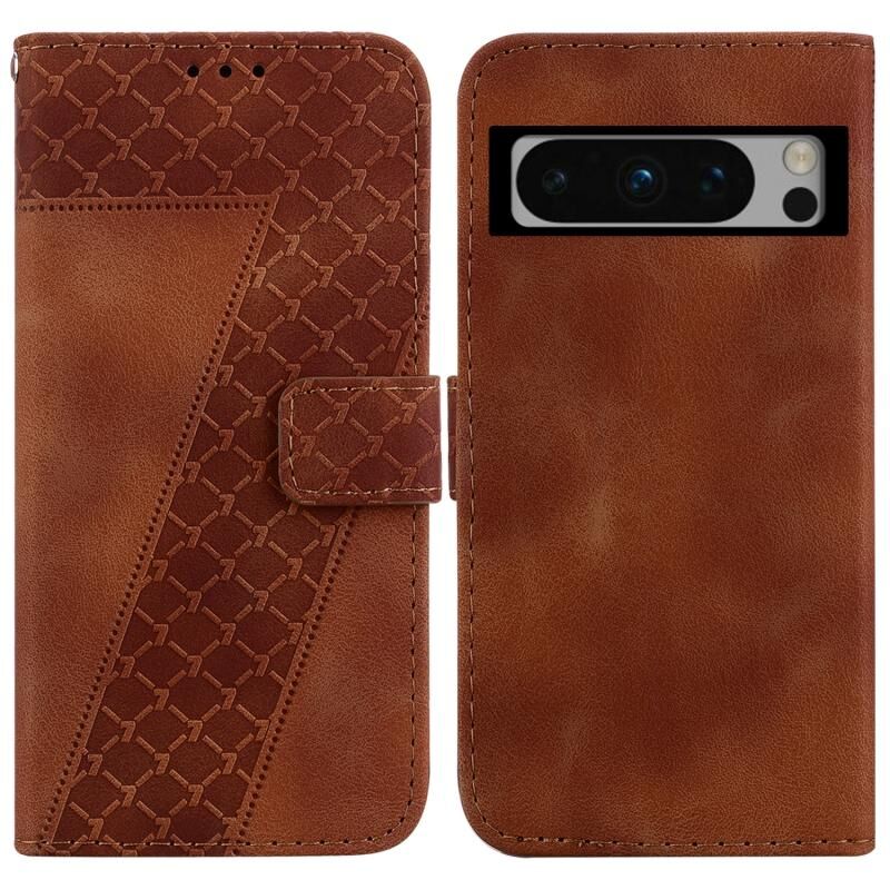 Θήκη τηλεφώνου από ανάγλυφο δέρμα σε σχήμα επτά για Google Pixel 8 Pro (Καφέ)