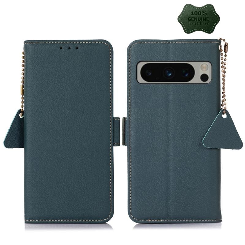 Θήκη τηλεφώνου από γνήσιο δέρμα TJ με μαγνητικό κλείσιμο για Google Pixel 8 Pro (Πράσινο)