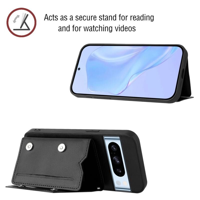 Για το Google Pixel 8 Pro Skin Feel Τέσσερις υποδοχές καρτών υπόθεση τηλεφώνου με λουράκι καρπού (μαύρο)