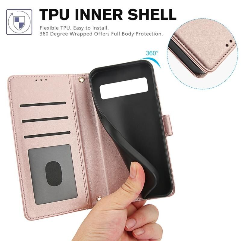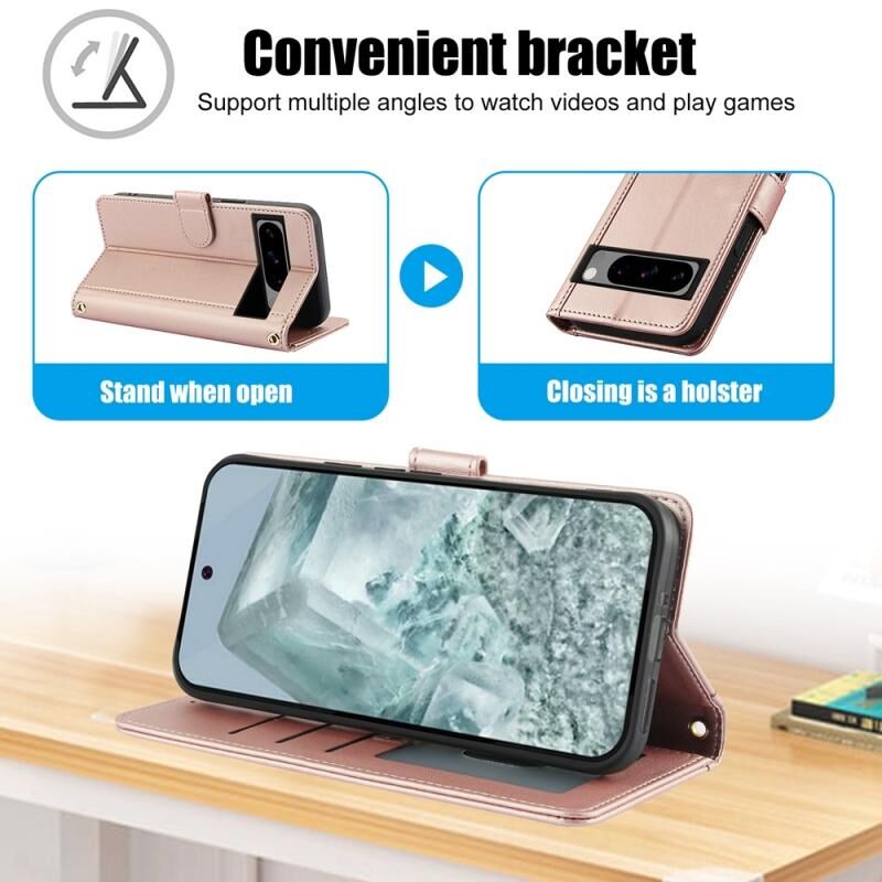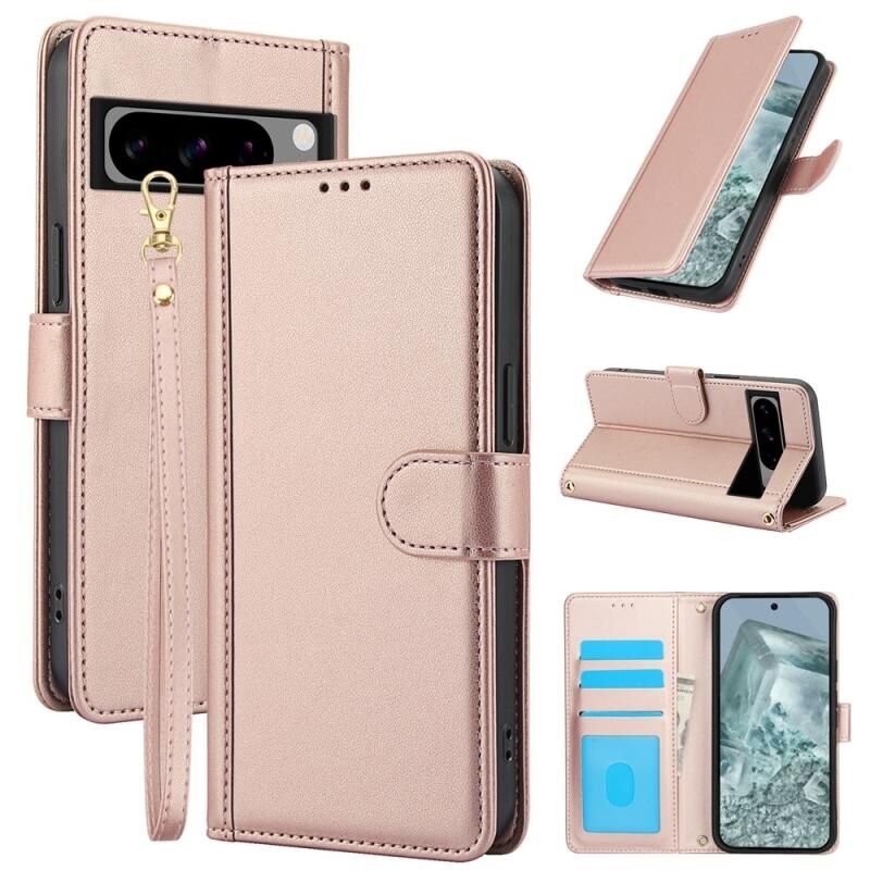 Για το Google Pixel 8 Pro Skin Feel Pure Color Card Slots δερμάτινη θήκη τηλεφώνου με διπλό κορδόνι (ροζ χρυσό)
