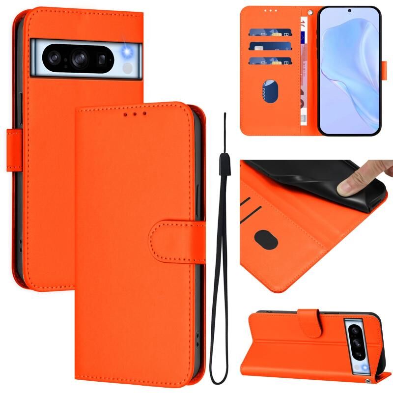 Για το Google Pixel 8 Pro Skin Feel Solid Color Δερμάτινη θήκη τηλεφώνου με κορδόνι (πορτοκαλί)