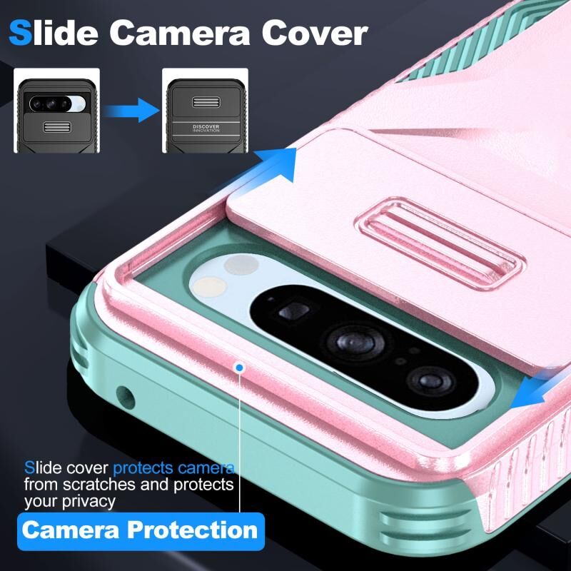 Για το Google Pixel 8 Pro Συρόμενη θήκη τηλεφώνου Camshield (ροζ + γκρι πράσινο)