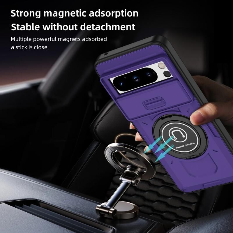 For Google Pixel 8 Pro Sliding Camshield TPU Hybrid PC Magnetic Holder Phone Case(Purple)