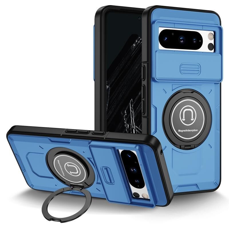For Google Pixel 8 Pro Sliding Camshield TPU Hybrid PC Magnetic Holder Phone Case(Sky Blue)