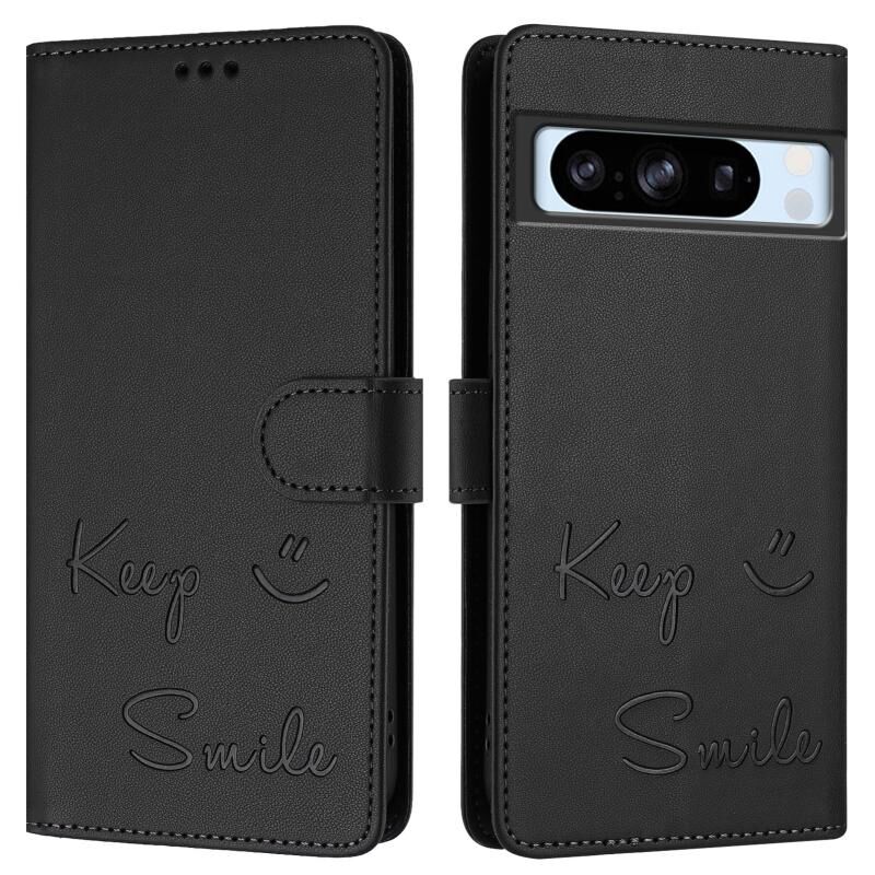 Για το Google Pixel 8 Pro Smile ανάγλυφο RFID δερμάτινη θήκη τηλεφώνου (Μαύρο)