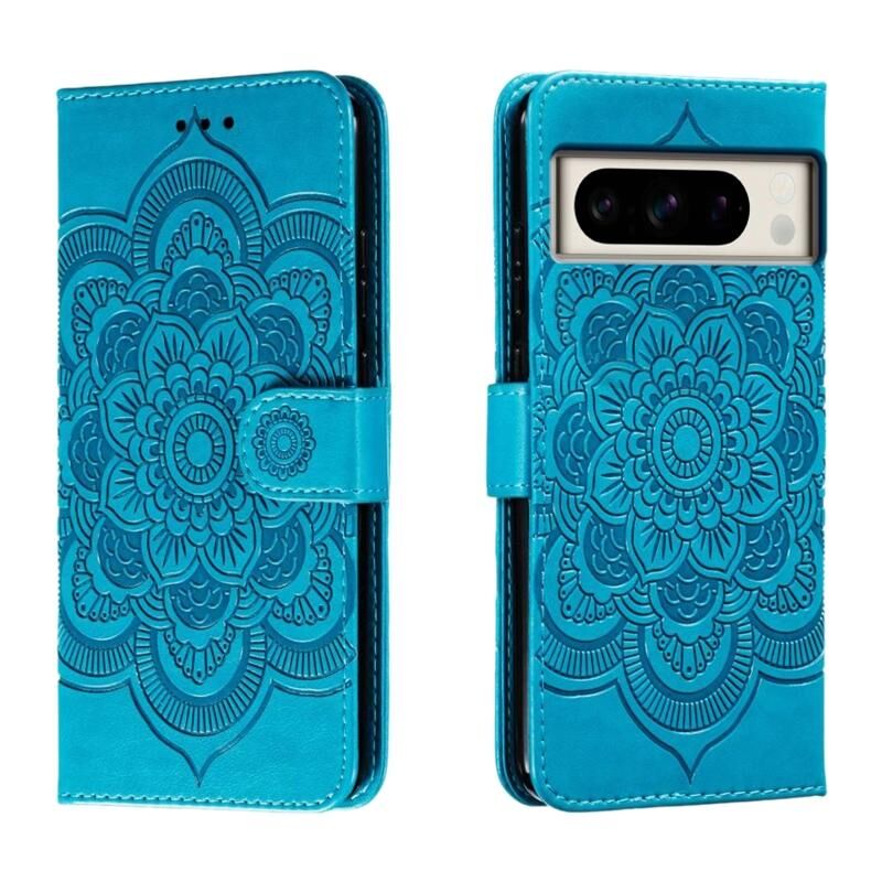 Για το Google Pixel 8 Pro Sun Mandala ανάγλυφο μοτίβο τηλέφωνο δερμάτινη θήκη (μπλε)