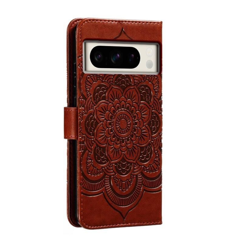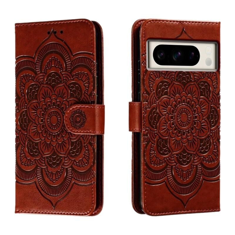 Για το Google Pixel 8 Pro Sun Mandala ανάγλυφο μοτίβο τηλέφωνο δερμάτινη θήκη (Καφέ)
