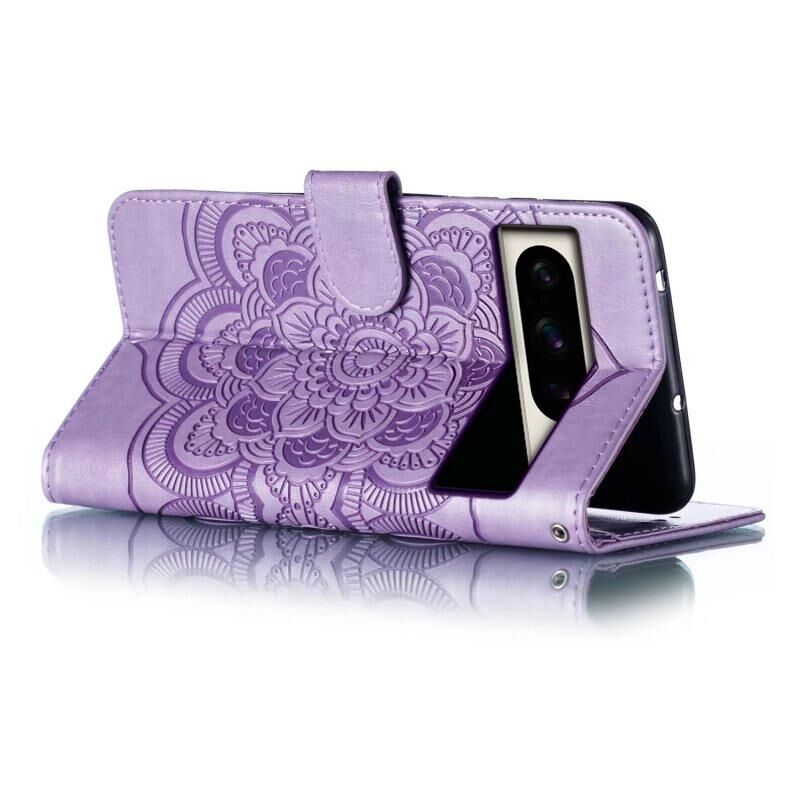 Για το Google Pixel 8 Pro Sun Mandala ανάγλυφο μοτίβο τηλέφωνο δερμάτινη θήκη (μωβ)