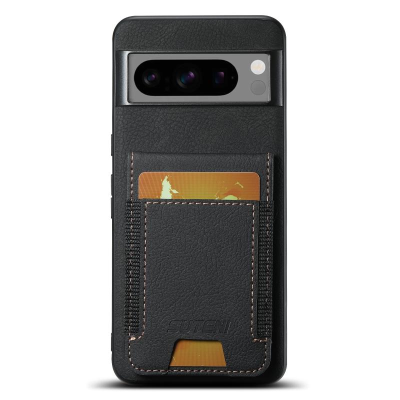 For Google Pixel 8 Pro Suteni H03 Litchi Leather Card Bag Stand Back Phone Case(Black) (Suteni)