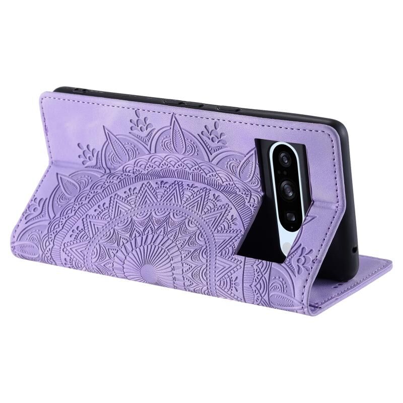 Για το Google Pixel 8 Pro Totem ανάγλυφη μαγνητική δερμάτινη θήκη τηλεφώνου (μωβ)