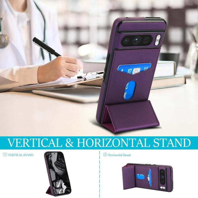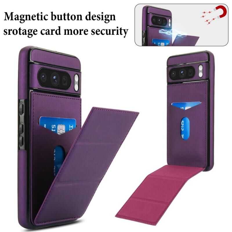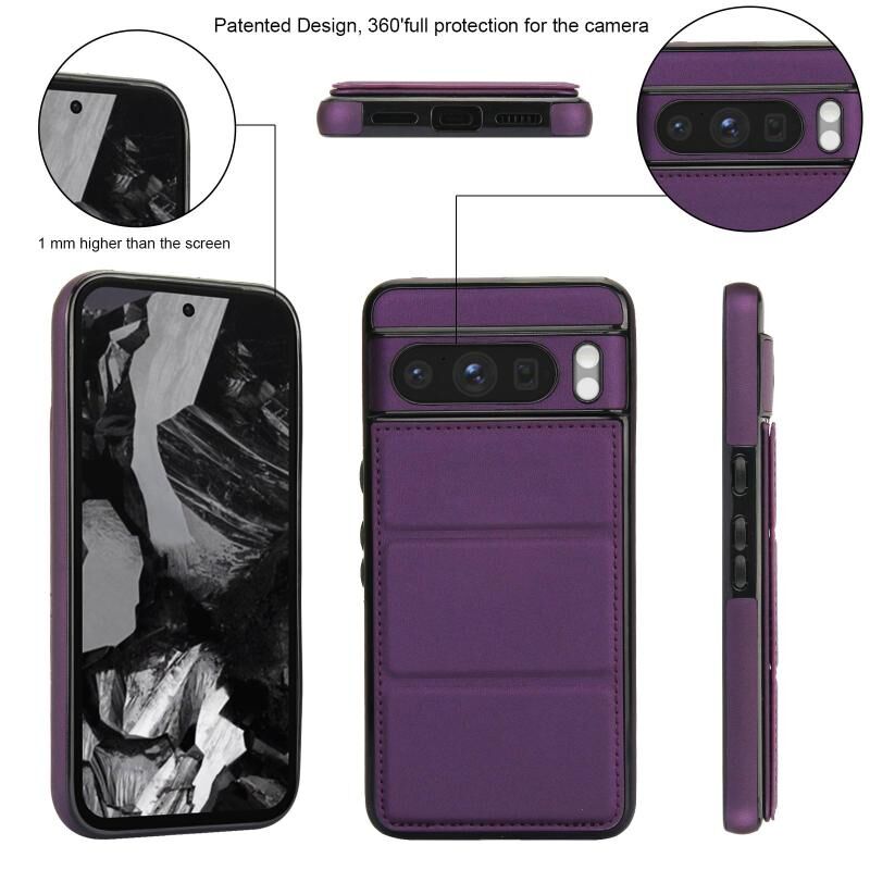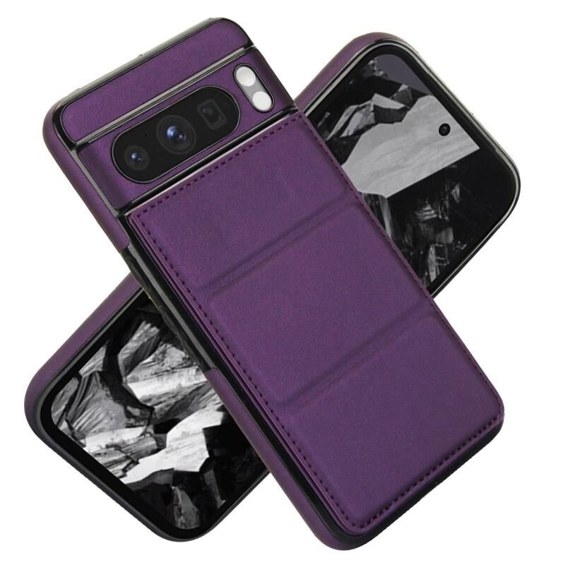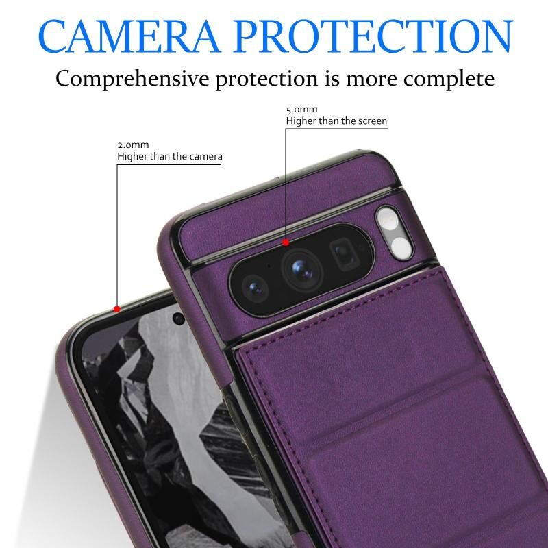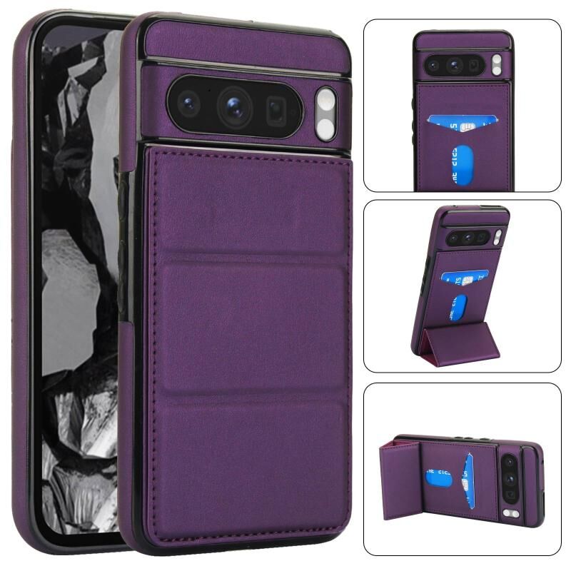 For Google Pixel 8 Pro Tri-fold Holder Leather Phone Case with Card Slot(Dark Purple)