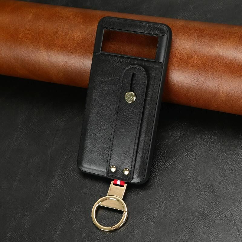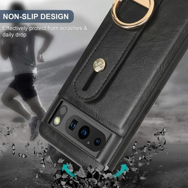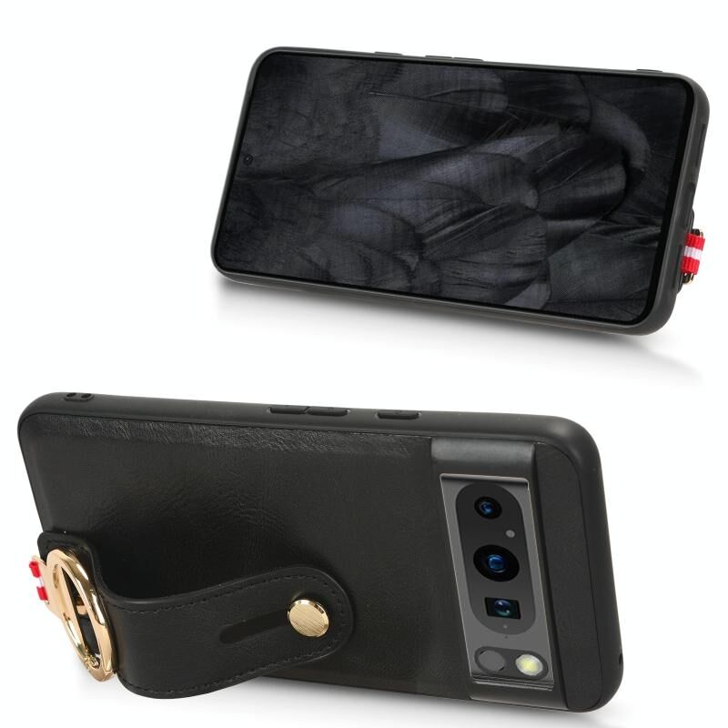 Για Google Pixel 8 Pro Wristband δέρμα πίσω θήκη τηλεφώνου (μαύρο)