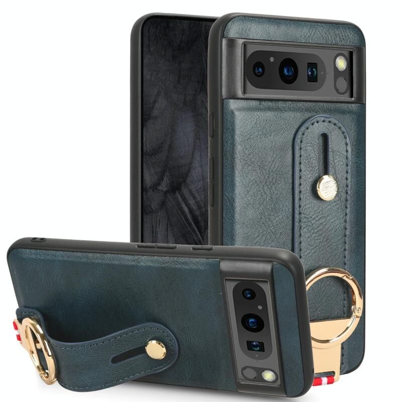 Για Google Pixel 8 Pro Wristband δέρμα πίσω θήκη τηλεφώνου (μπλε)