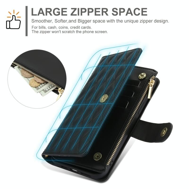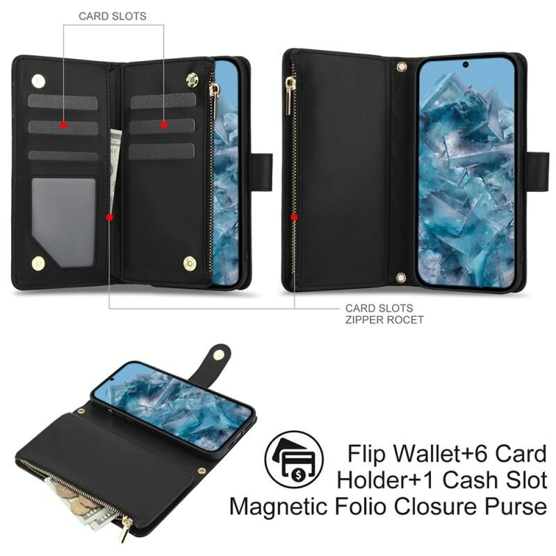 5. Λειτουργία πορτοφολιού πολλαπλών καρτών: πολλαπλές υποδοχές καρτών και τσέπες πορτοφολιού με φερμουάρ, θήκες μετρητών μπορούν να αποθηκεύσουν τις πιστωτικές σας κάρτες και τα καθημερινά μικρά χαρτονομίσματα.