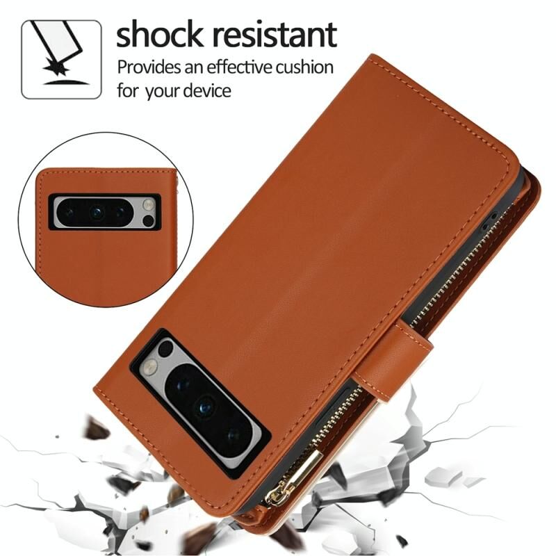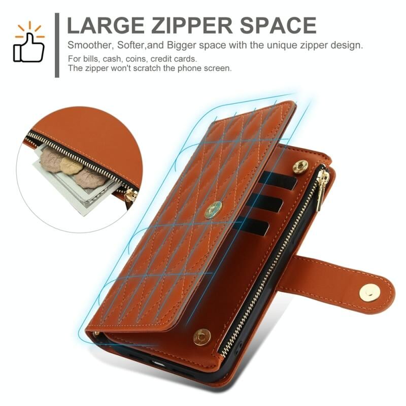 Για το Google Pixel 8 Pro YM016 Ρομβική φερμουάρ κάρτα πορτοφόλι δερμάτινη θήκη τηλεφώνου με κορδόνι (καφέ)
