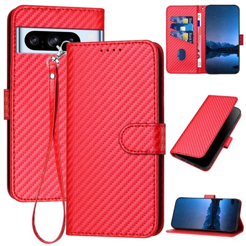 For Google Pixel 8 Pro YX0070 Carbon Fiber Buckle Leather Phone Case with Lanyard(Red)
