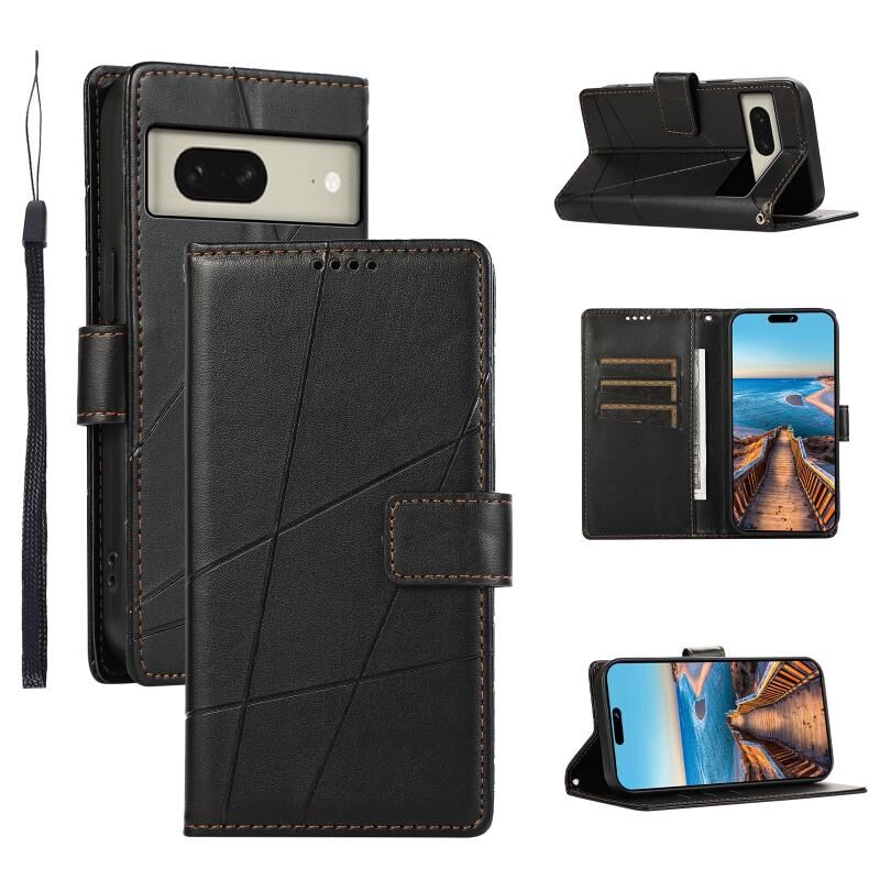 For Google Pixel 8 PU Genuine Leather Texture Embossed Line Phone Case(Black)