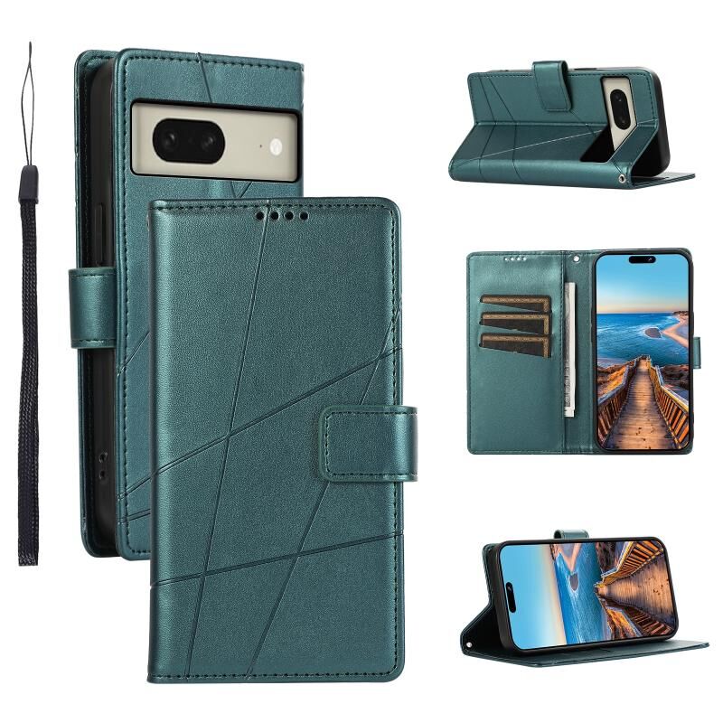 For Google Pixel 8 PU Genuine Leather Texture Embossed Line Phone Case(Green)