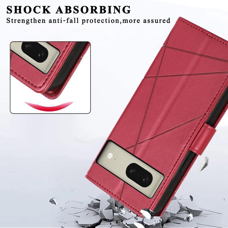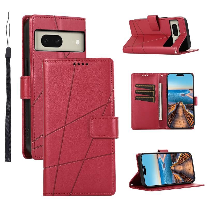 For Google Pixel 8 PU Genuine Leather Texture Embossed Line Phone Case(Red)