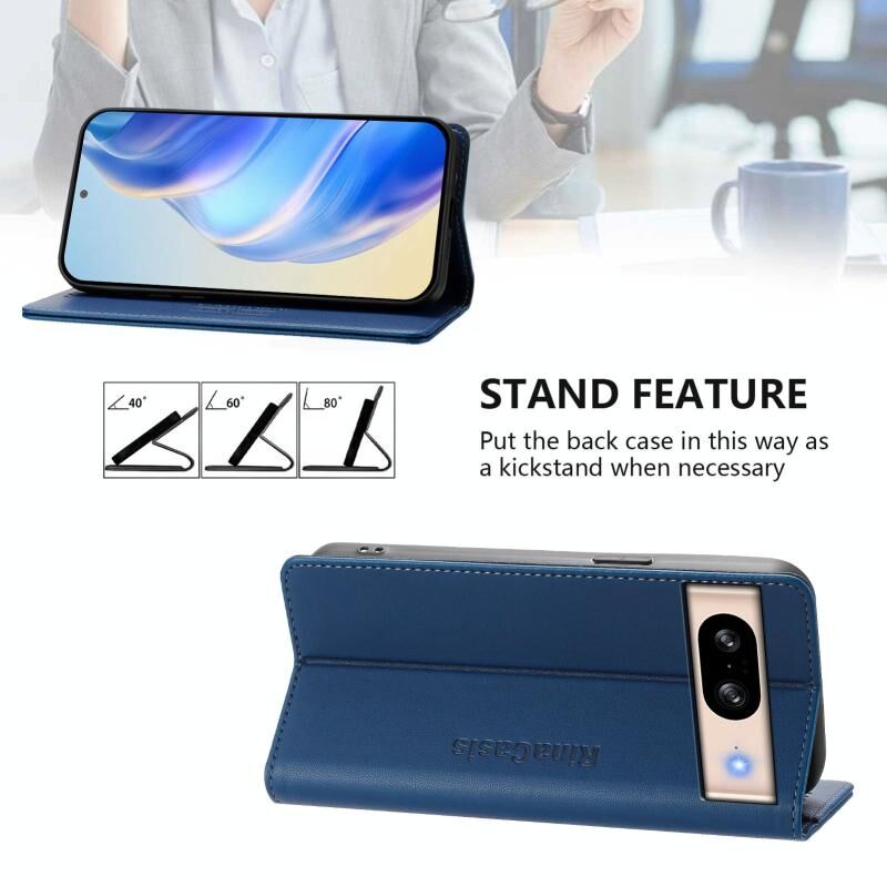 For Google Pixel 8 RC01 Dual-Folded Magnetic Suction RFID Leather Phone Case(Dark Blue)