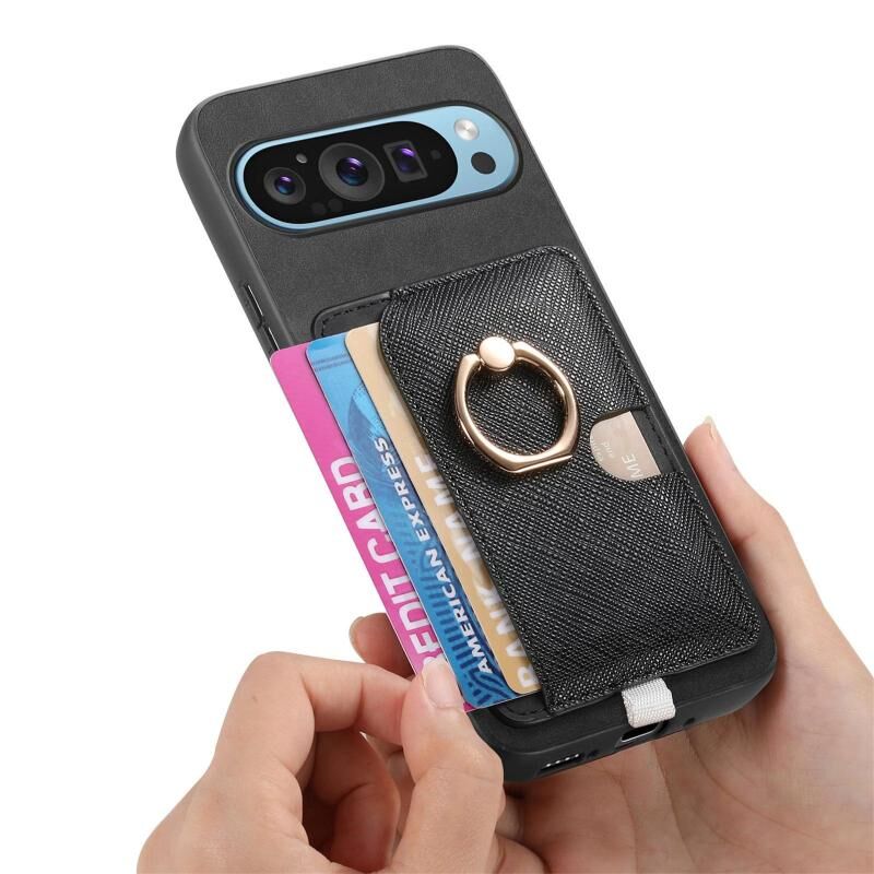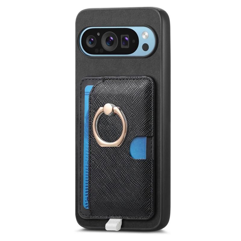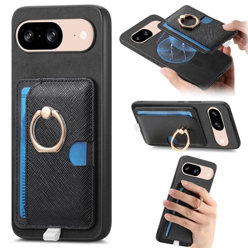 For Google Pixel 8 Retro Cross Leather Ring Side Insert Card Bag MagSafe Phone Case(Black)