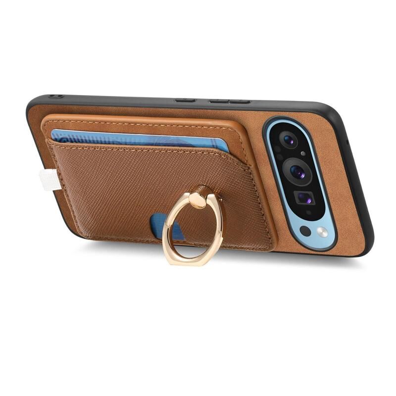 For Google Pixel 8 Retro Cross Leather Ring Side Insert Card Bag MagSafe Phone Case(Brown)