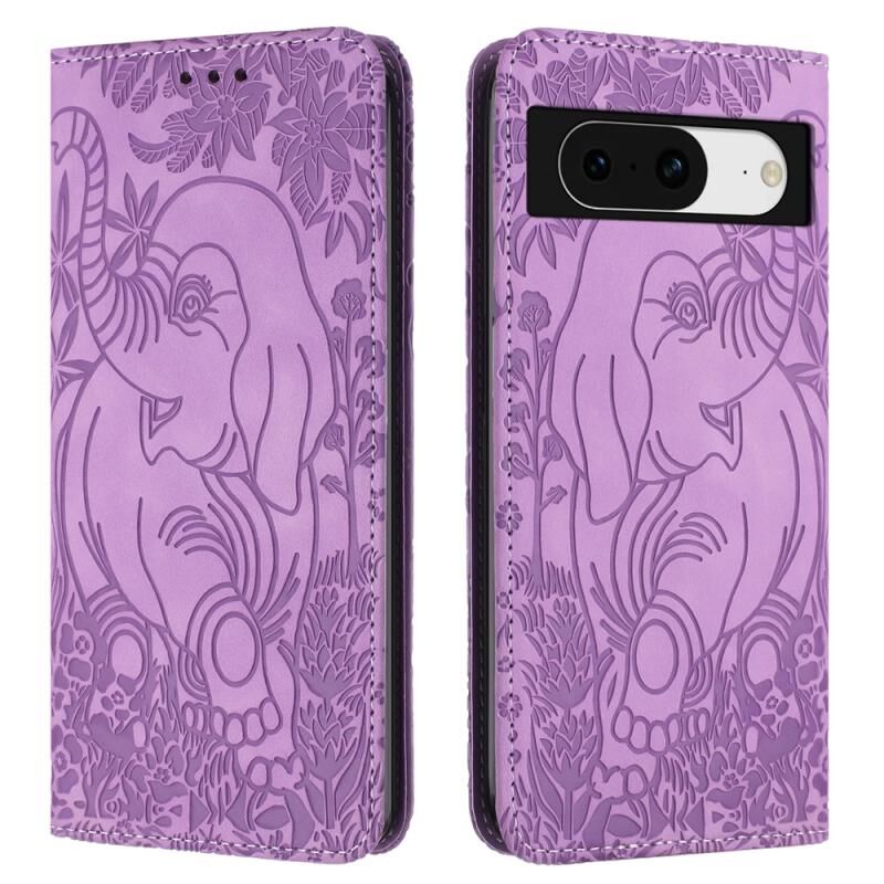 Θήκη τηλεφώνου από δέρμα με ανάγλυφο σχέδιο ρετρό ελέφαντα για Google Pixel 8 (Μπλε)