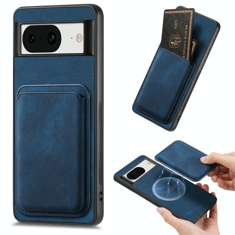 Για το Google Pixel 8 Ρετρό δερμάτινη τσάντα κάρτα μαγνητική θήκη τηλεφώνου (μπλε)