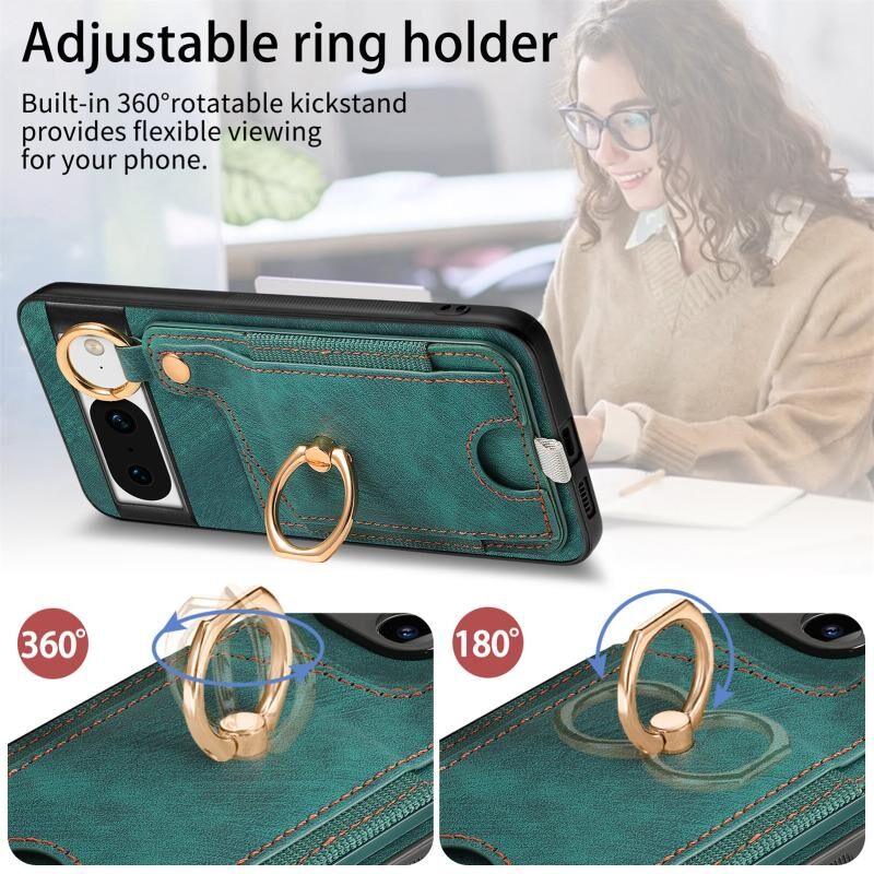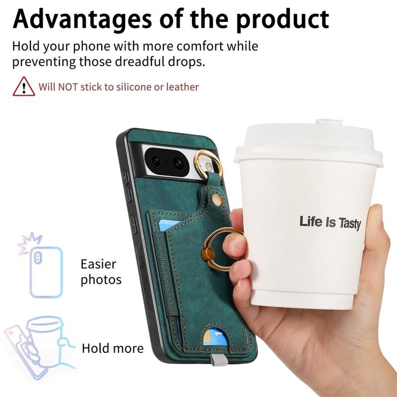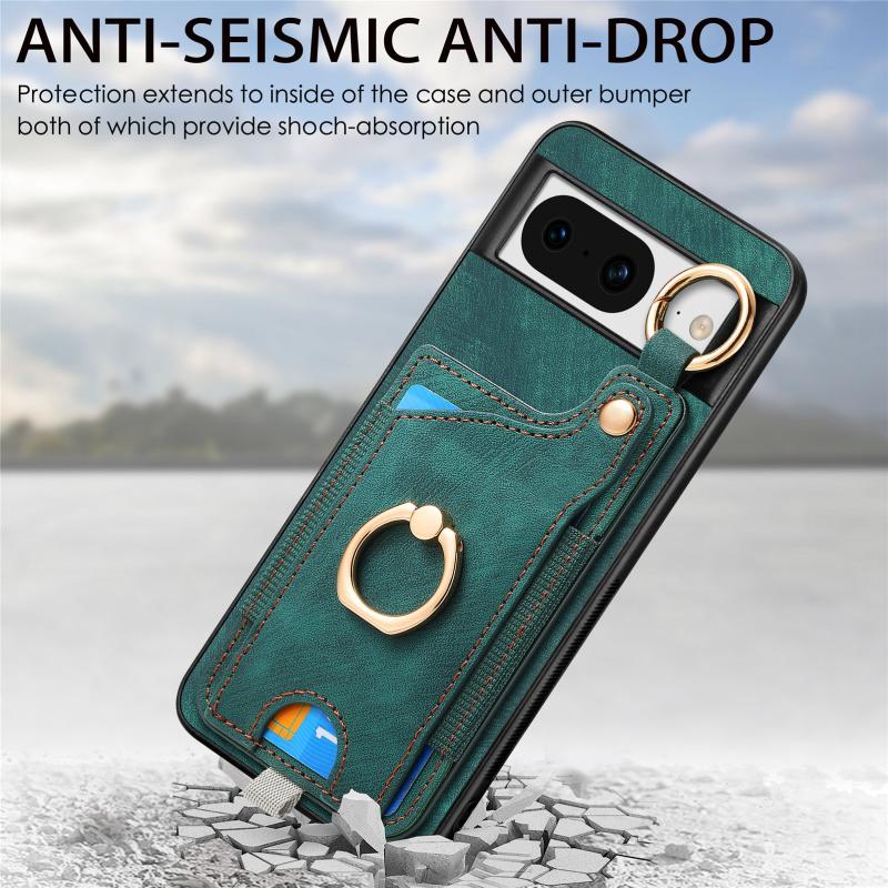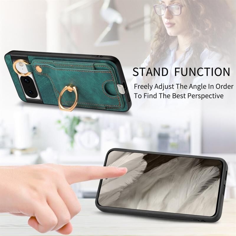 For Google Pixel 8 Retro Skin-feel Ring Card Bag Phone Case with Hang Loop(Green)