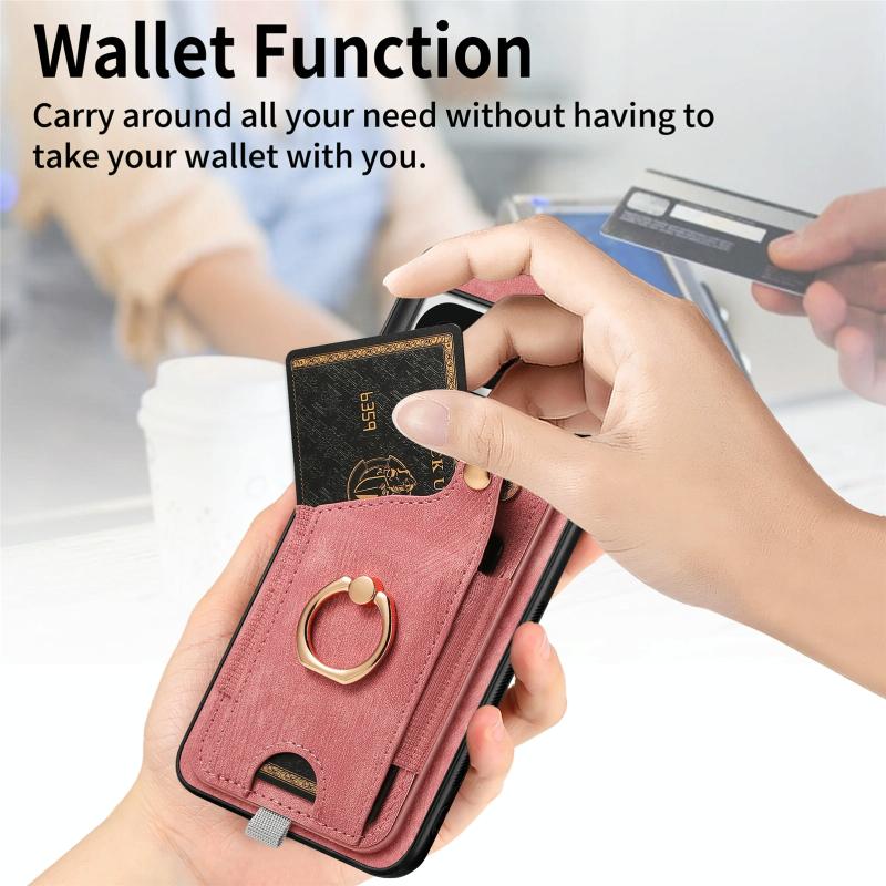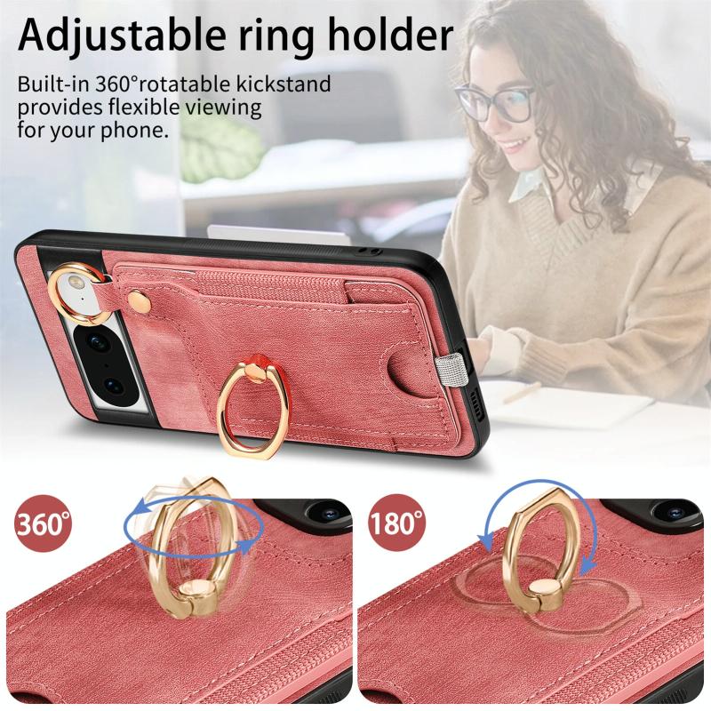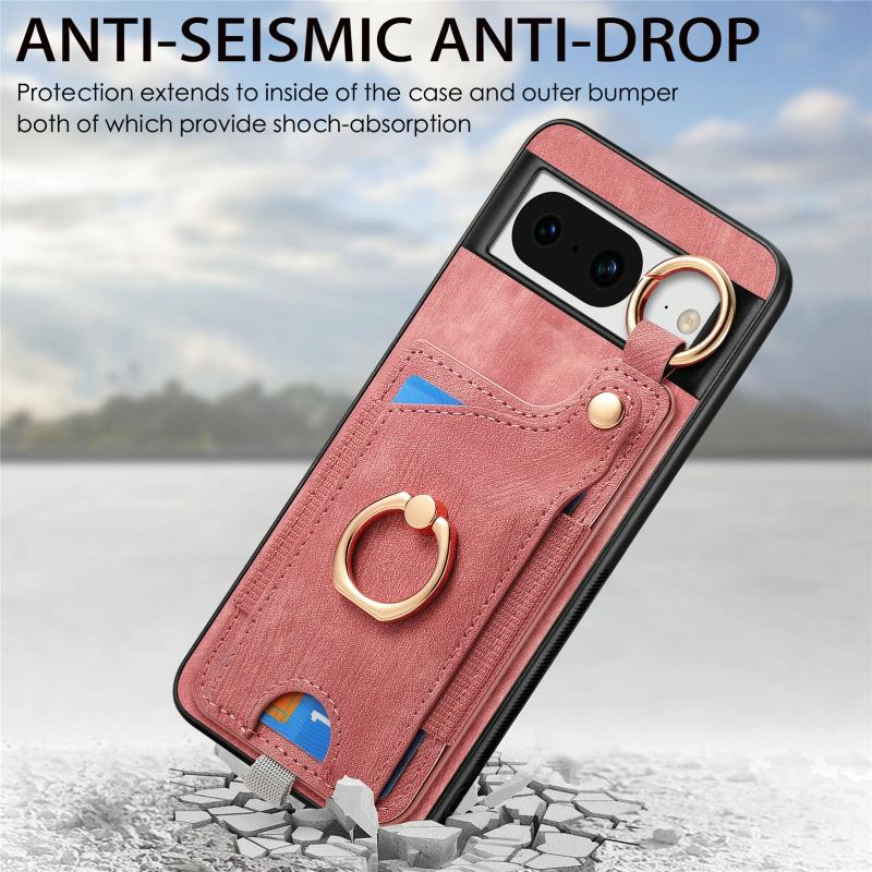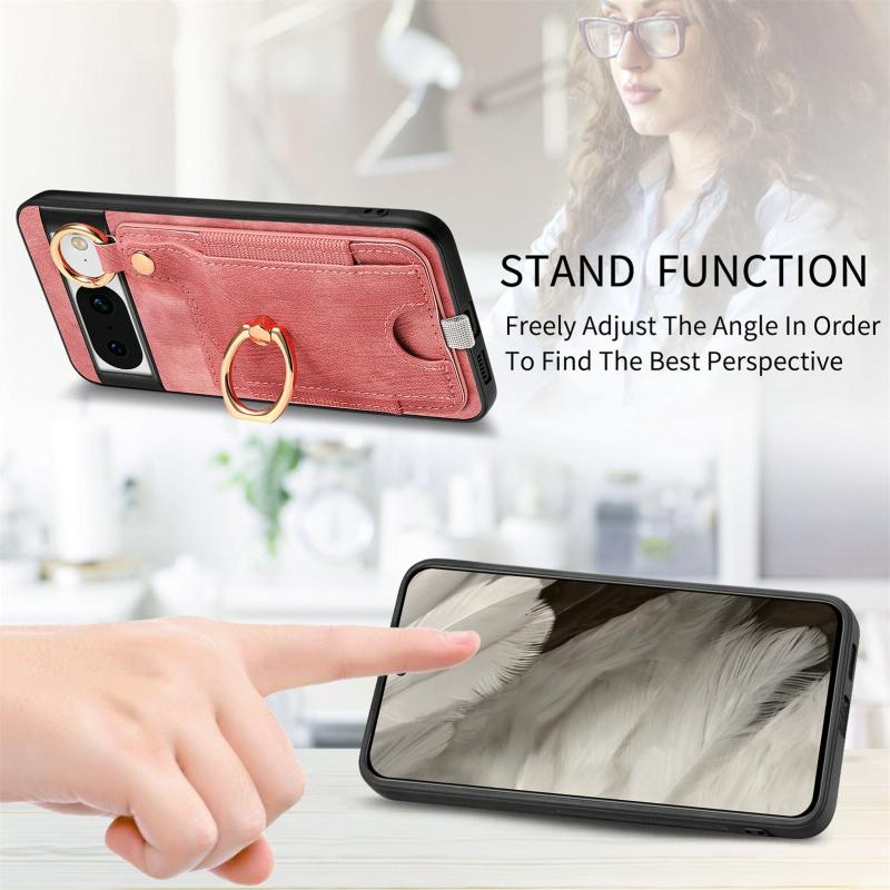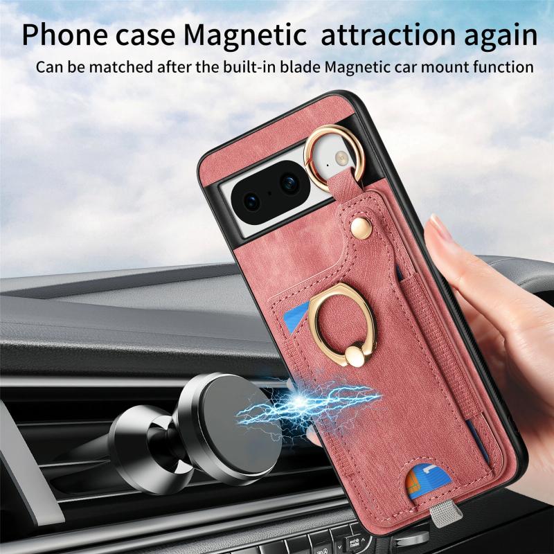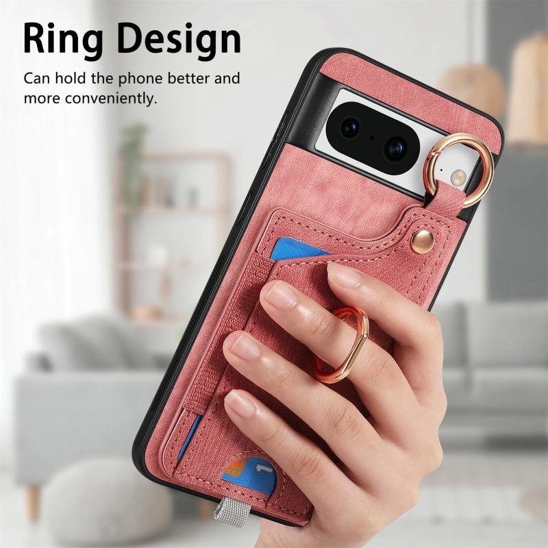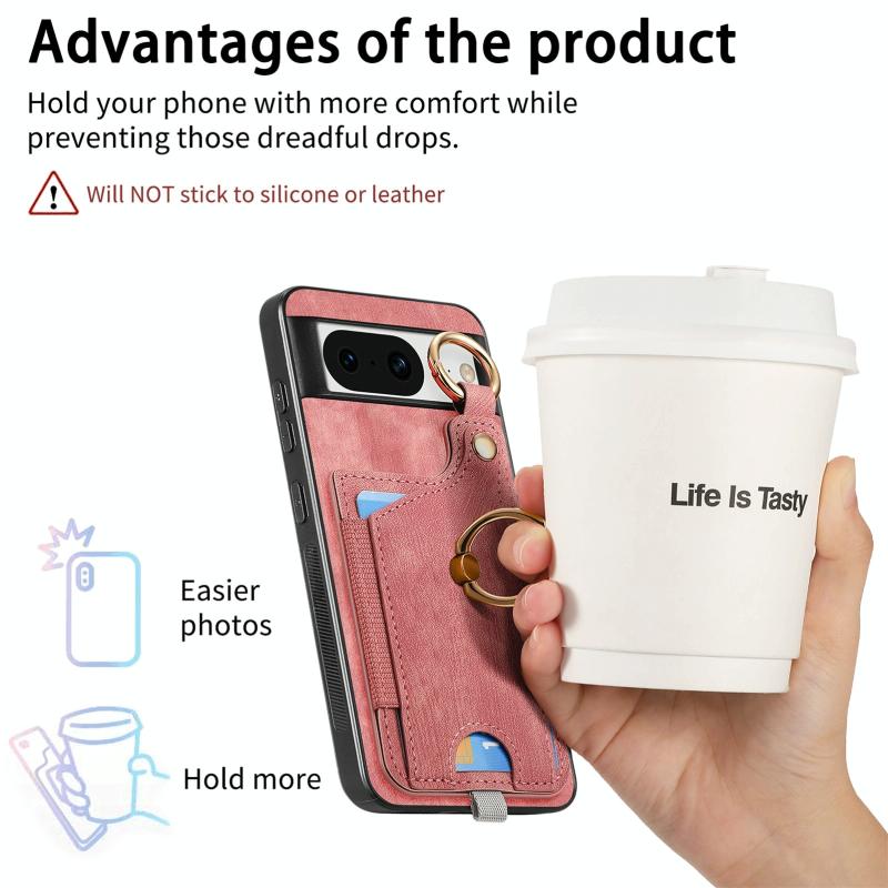 For Google Pixel 8 Retro Skin-feel Ring Card Bag Phone Case with Hang Loop(Pink)
