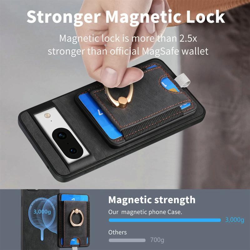 5. The leather wallet features strong built-in magnets that allow it to effortlessly snap into place on the back of your phone, easy to use and remove.