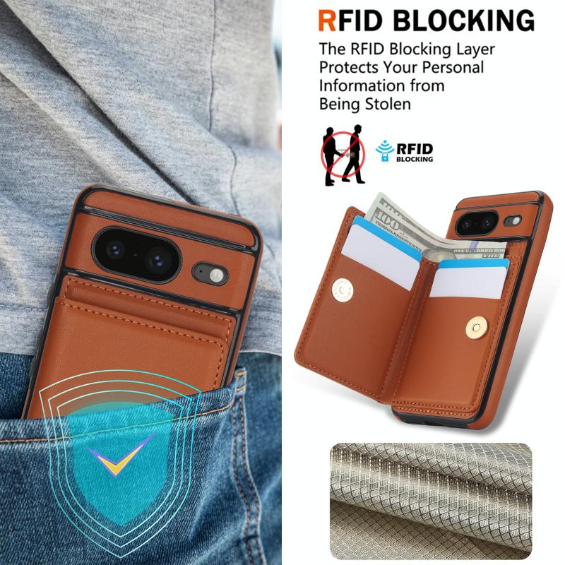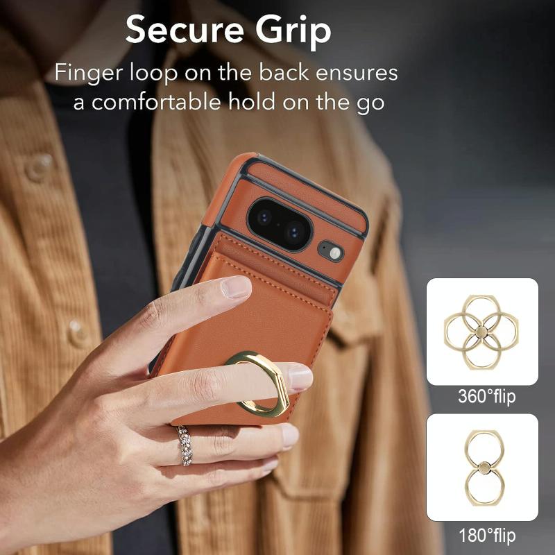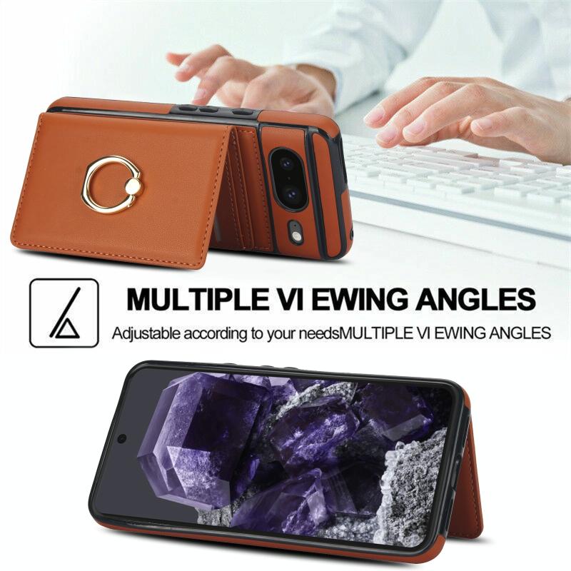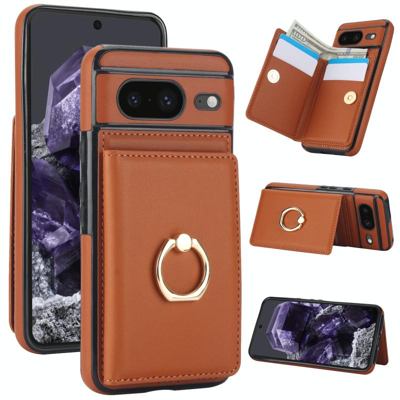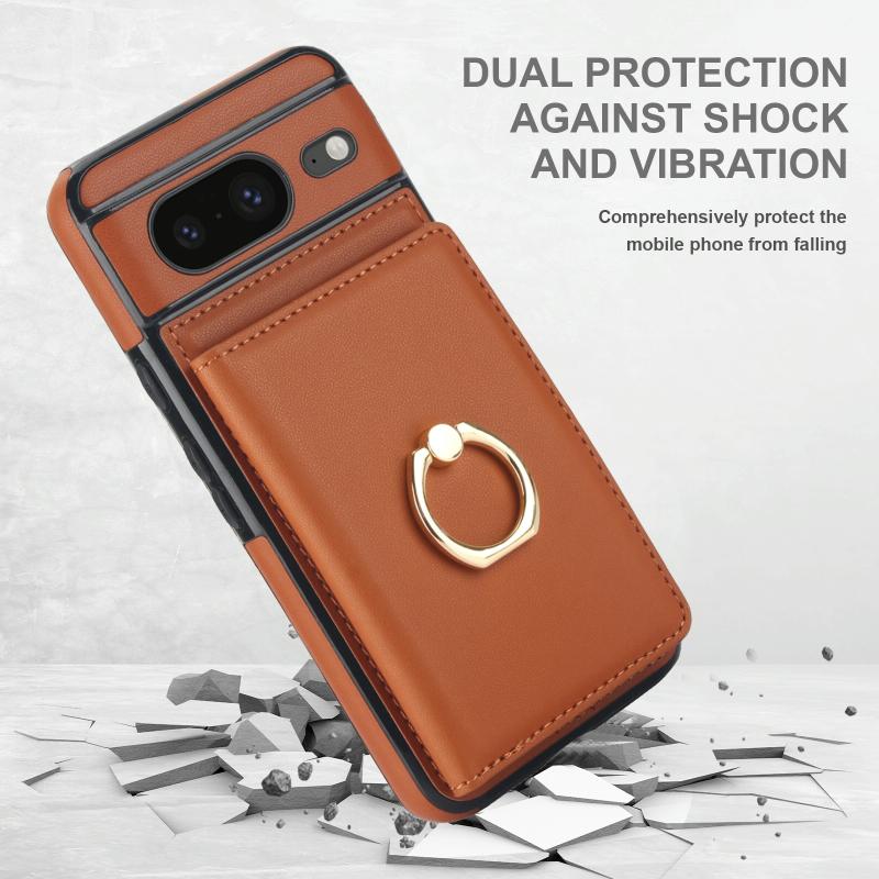 For Google Pixel 8 RFID Anti-theft Card Ring Holder Phone Case(Brown)