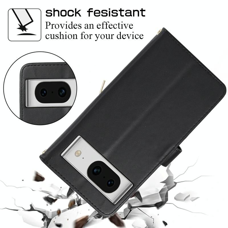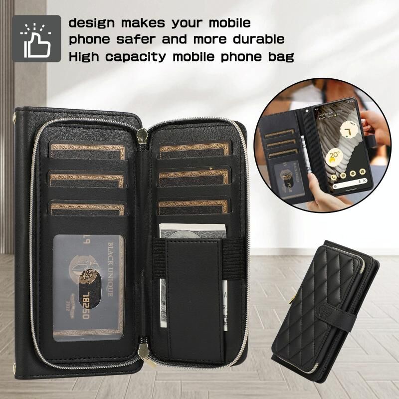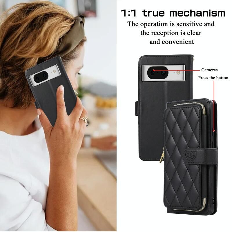 Για το Google Pixel 8 Rhombic Full φερμουάρ Wallet Δερμάτινη θήκη τηλεφώνου (μαύρο)